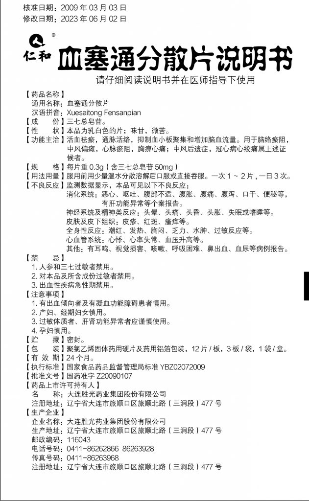 活血祛瘀,通脈活絡(luò),抑制血小板聚集和增加腦血流量。用于腦絡(luò)瘀阻,中風(fēng)偏癱,心脈瘀阻,胸痹心痛;中風(fēng)后遺癥,冠心病心絞痛屬上述證候者。