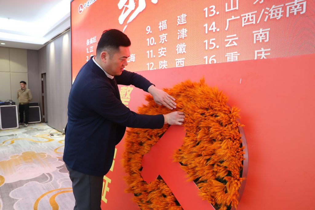 舞臺(tái)一側(cè),責(zé)任狀簽訂席莊嚴(yán)肅穆;舞臺(tái)中央,“仁和大麥墻”巍然矗立,金穗燦然,寓意業(yè)績(jī)“大賣(mài)”、碩果盈枝。在激昂奮進(jìn)的樂(lè)曲聲中,各省區(qū)團(tuán)隊(duì)依次登臺(tái)。團(tuán)隊(duì)成員手持金色麥穗肅立后方,象征同心共擔(dān)、使命共赴。李總首先為公司十周年員工頒發(fā)紀(jì)念相框,致敬他們與中進(jìn)風(fēng)雨同舟的堅(jiān)守。隨后,各省區(qū)團(tuán)隊(duì)將麥穗鄭重插入“大麥墻”,這一儀式感十足的動(dòng)作,寓意著將目標(biāo)扎根沃土,靜待豐收在望。