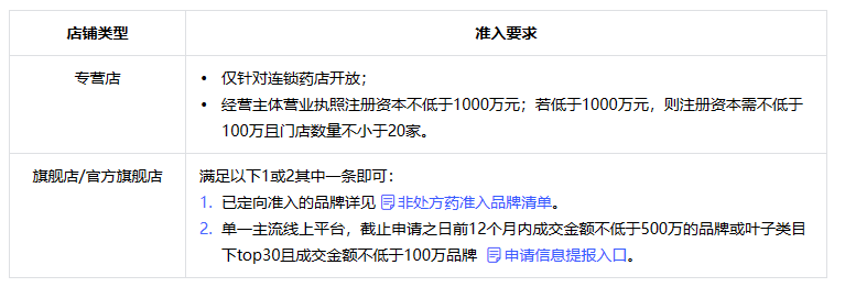 今年8月,抖音學習中心發布《【藥品】類目管理規范》(以下簡稱《規范》),《規范》明確,二級類目“非處方藥”,僅允許官方旗艦店、旗艦店和專營店在符合相應準入標準下準入。其中,專營店僅針對連鎖藥店開放。抖音要求,經營主體營業執照注冊資本不低于1000萬元;若低于1000萬元,則注冊資本需不低于100萬且門店數量不小于20家。