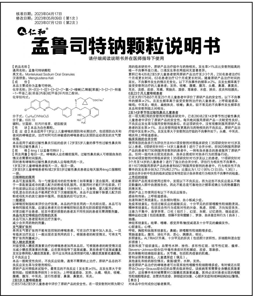 本品適用于1歲以上兒童哮喘的預(yù)防和長(zhǎng)期治療,包括預(yù)防白天和夜間的哮喘癥狀,治療對(duì)阿司匹林敏感的哮喘患者以及預(yù)防運(yùn)動(dòng)誘發(fā)的支氣管收縮。 本品適用于減輕過(guò)敏性鼻炎引起的癥狀(2歲至5歲兒童的季節(jié)性過(guò)敏性鼻炎和常年性過(guò)敏性鼻炎)。