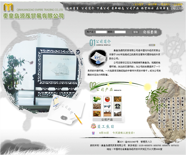 公司總部設立在北方海濱城市秦皇島。優越的地理環境,發達的交通網絡,為公司的發展提供了一個良好的外部環境。一大批具有實踐經驗的中青年外貿技術骨干,成為公司發展的內在動力和財富。