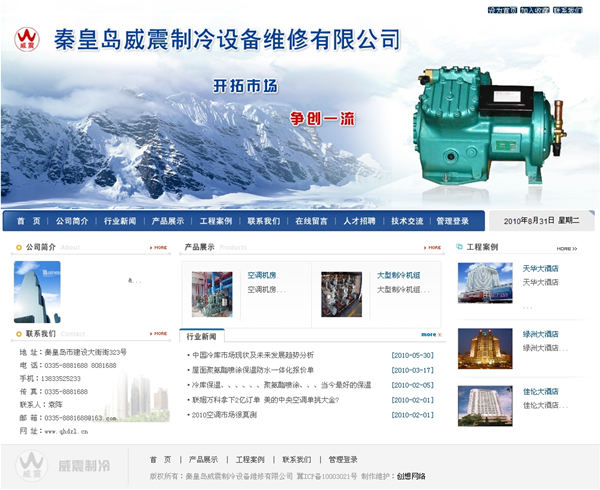 秦皇島威震制冷設(shè)備維修有限公司自創(chuàng)立以來(lái)一直堅(jiān)守“精益求精,誠(chéng)實(shí)守信”的理念和以整合渠道資源的思想不懈努力著。秦皇島威震制冷設(shè)備維修有限公司專業(yè)安裝各種規(guī)格的冷凍、冷藏、氣調(diào)保鮮及速凍設(shè)備。為客戶提供從設(shè)計(jì)、生產(chǎn)、施工及售后的一條龍服務(wù),并且承接各種非標(biāo)準(zhǔn)制冷系統(tǒng)的設(shè)計(jì)與安裝。