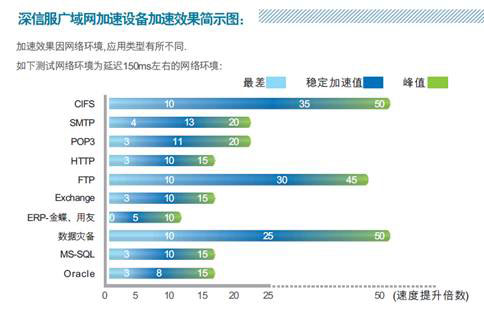 深信服廣域網優化產品提供了基于應用層的優化技術,對于廣泛使用的應用程序,如Web應用程序、文件共享、電子郵件、OA、ERP、CRM、 Lotus Notes、數據庫等,都提供了相應的應用協議優化技術,大幅提升了應用程序在廣域網中應用效率。