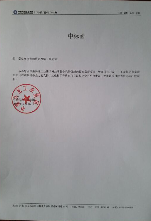 慶祝創想網絡在中秦興龍工業集團網站的項目中憑借優越的提案與技術實力,贏得了本次中秦興龍工業集團的官方網站項目!