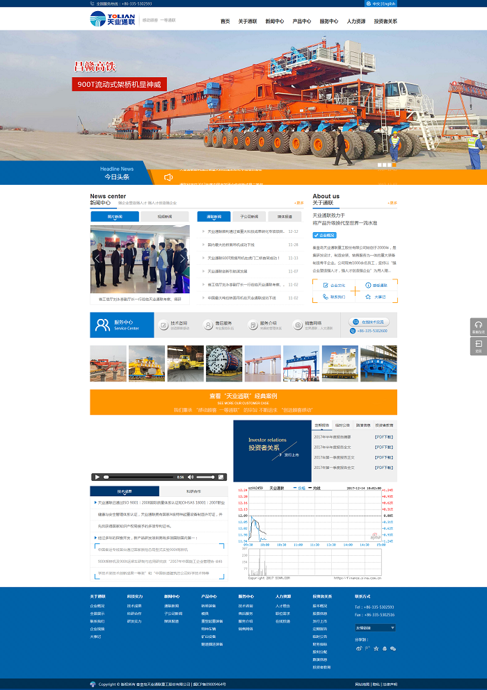 秦皇島天業通聯重工股份有限公司網站改版上線!